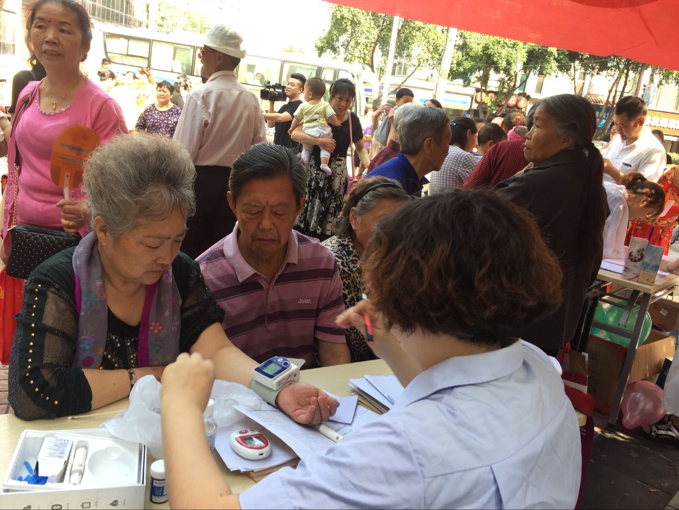 此次义诊向群众宣传健康知识,为100多名老年人进行了咨询、检测。由于社区中老年人较多,多数患有高血压、糖尿病等慢性疾病。志愿者们给患者叮嘱了许多饮食上应注意的问题:低盐饮食,多吃绿色蔬菜和新鲜水果,多吃含钙量高的食物,少吃胆固醇高的食物。