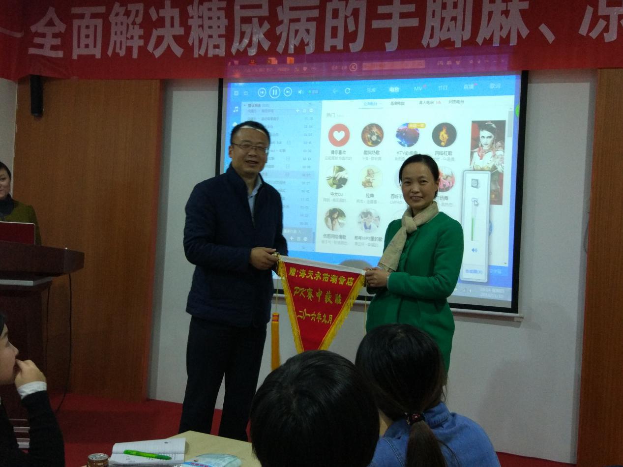 陈总为潮音店颁发获奖锦旗 PK获胜奖励