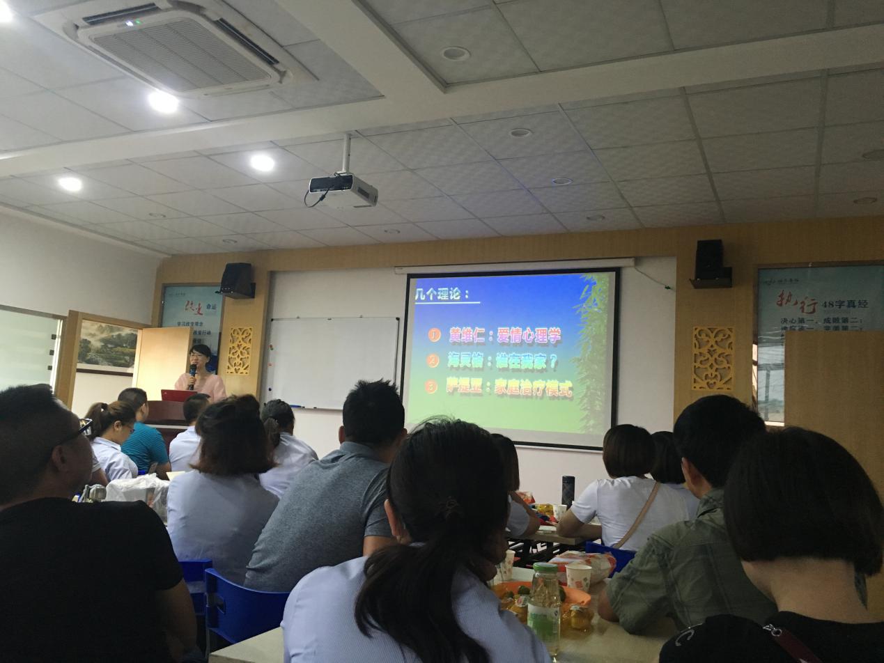 2017年6月30日晚6点,在四川省海天承佑药房连锁有限公司培训室举办了一场“关爱白领心理健康知识讲座”,此次讲座主讲人是成都杰和心理咨询中心付成敏老师,公司的中高层领导都出席了本次讲座。