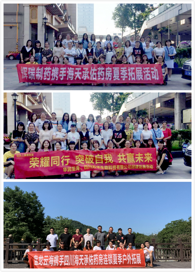为活跃公司各部门的文化生活,提高团队士气,增强团队凝聚力2019年8月15日,公司携手盘龙云海、华润圣海四川万华生物科技有限公司、辉瑞制药、分批分点进行一年一度的大型拓展活动。