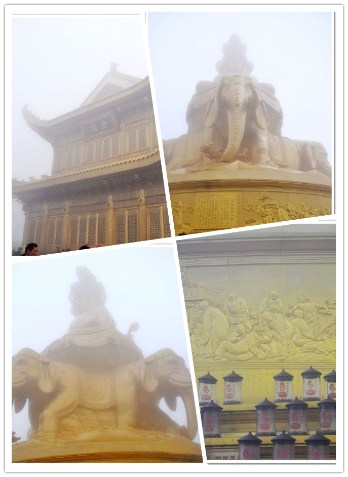 无奈天气不好,当我们的家人们走进峨眉时,正是大雾天气,所见之处,除了山就是路,就连金顶也被云雾淹没,就连猴子也躲在窝里不出来。不过,烟雾缭绕中的金顶又是另一番味道,庄重而不失神秘,让人更加虔诚和敬畏,不虚此行。