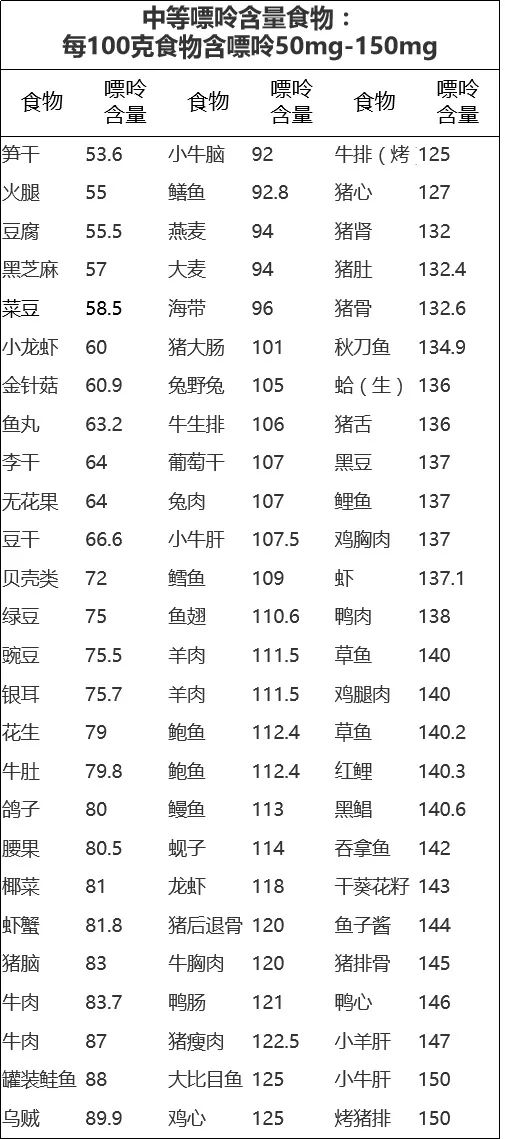 怎么知道食物的嘌呤含量多少呢?